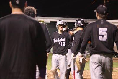 #12 Mike Murphy is congratulated after scoring a run